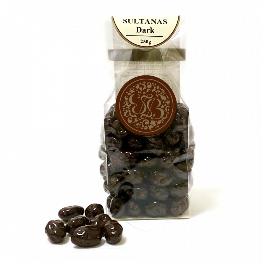 Sundried Montmorency red tart cherries, gently tumbled in a stream of dark or milk chocolate, presented in a window box.